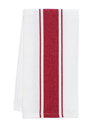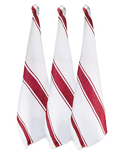 Holiday Stripe Christmas Tea Towels - Pacific Home 100% Cotton Bistro Stripe Kitchen Dish Towels - set of 3 - (Red Stripe)