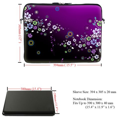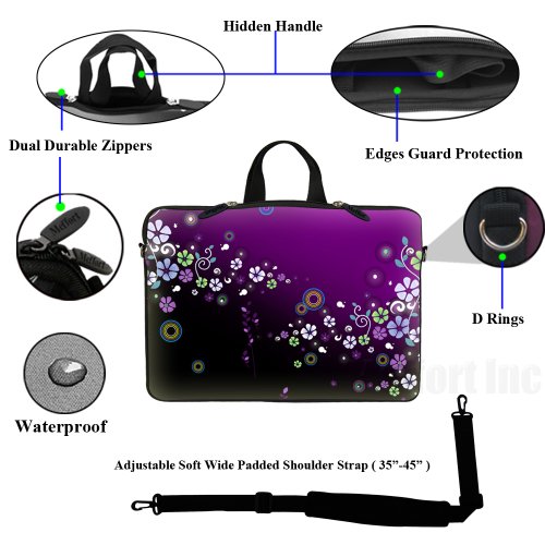 -. Binding : Personal Computers -. Brand : Meffort Inc -. EAN : 0765573880793 -. Feature : Hydrophobic (water resistance) neoprene material, w. reinforced dual zipper to secure your device / High quality printing on both side of the bag with laptop edge guard / Fits laptop size up to 15.6", Fits laptop dimension up to: 15.2" (385mm) x 11.5" (290mm) / Item can be use as shoulder bag w. strap in use or can be use as carrying bag (Hidden Handle) or Sleeve / Note: zipper will not close fully when hidden handle is in use, but it doesn't affect functionality -. Label : Meffort Inc -. Manufacturer : Meffort Inc -. Model : GStrap2700 -. MPN : GStrap2700 -. PartNumber : GStrap2700 -. ProductGroup : PC Accessory -. ProductTypeName : CARRYING_CASE_OR_BAG -. Publisher : Meffort Inc -. Studio : Meffort Inc -. Title : Meffort Inc 15 15.6 inch Neoprene Laptop Sleeve Bag Carrying Case with Hidden Handle and Adjustable Shoulder Strap - Purple Flower Design -. UPC : 765573880793