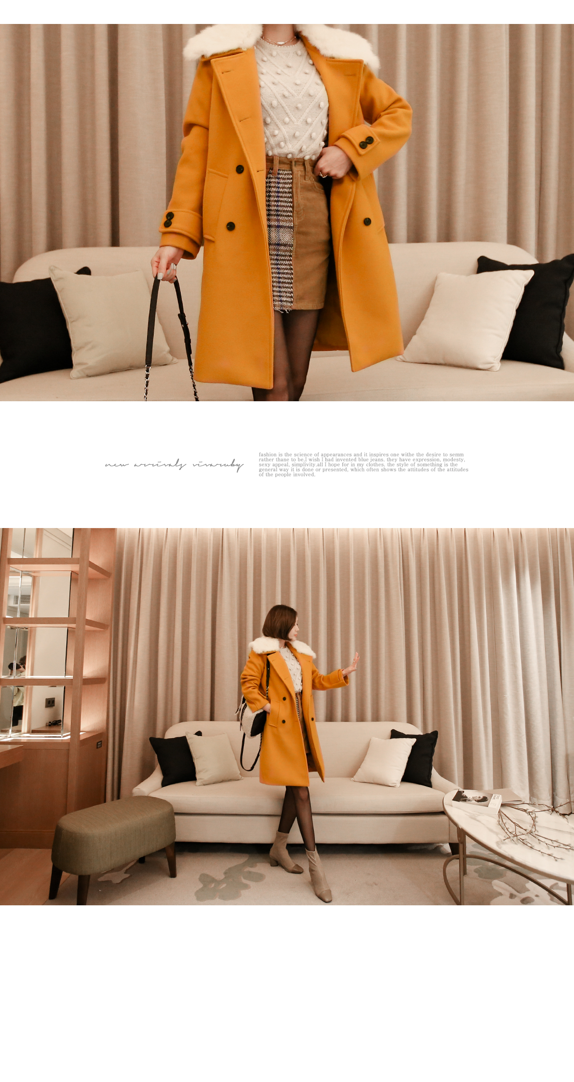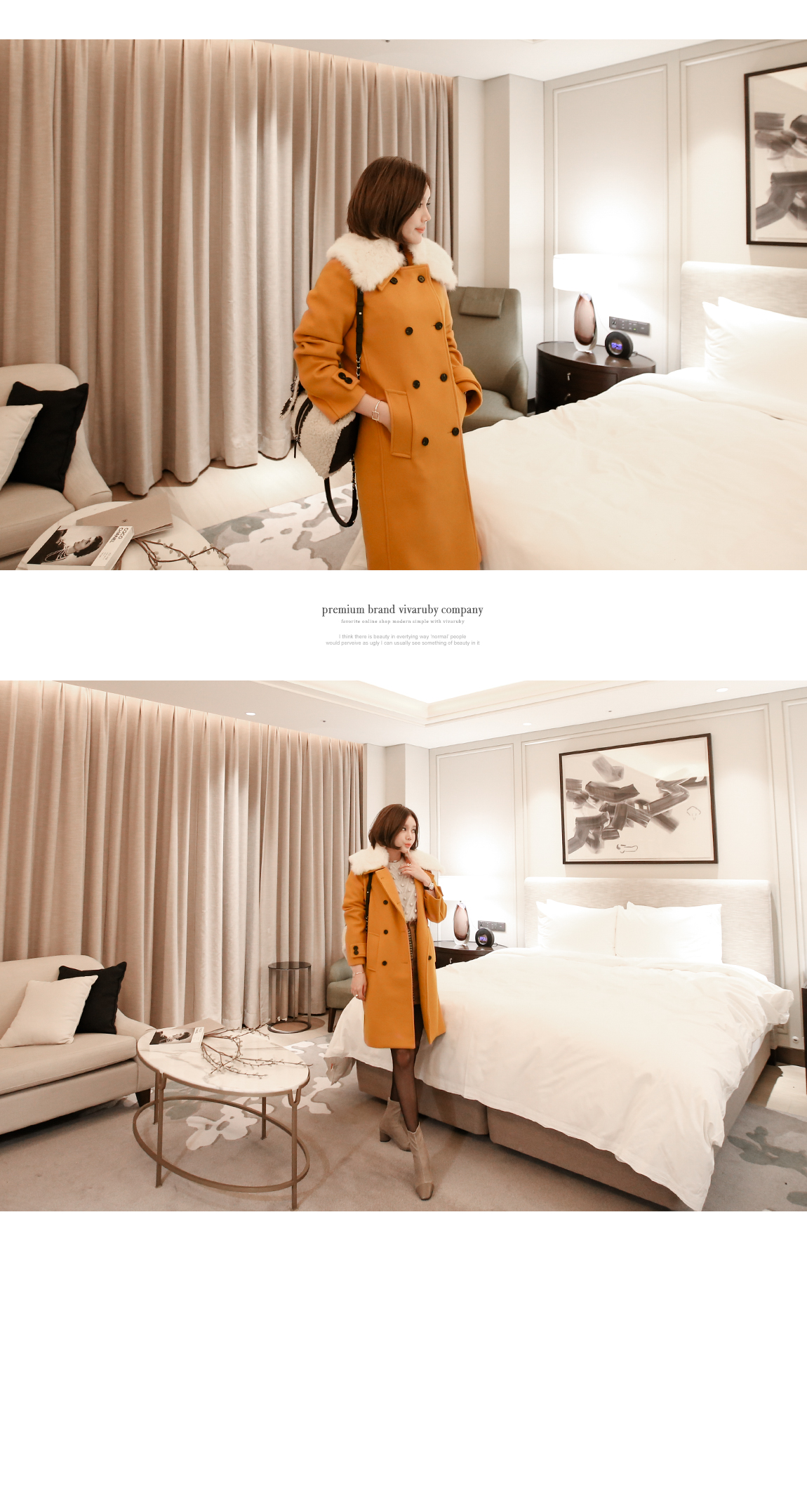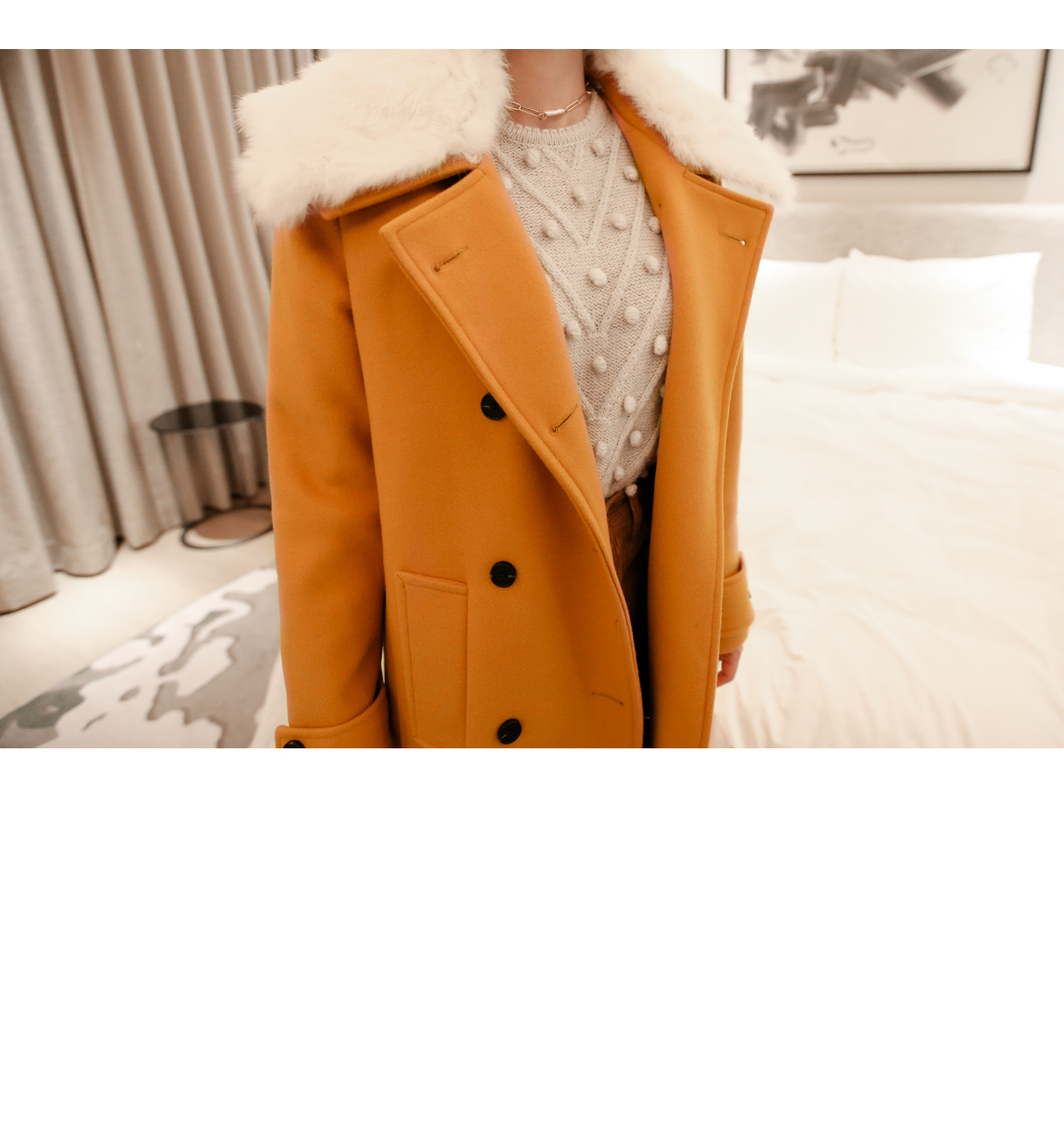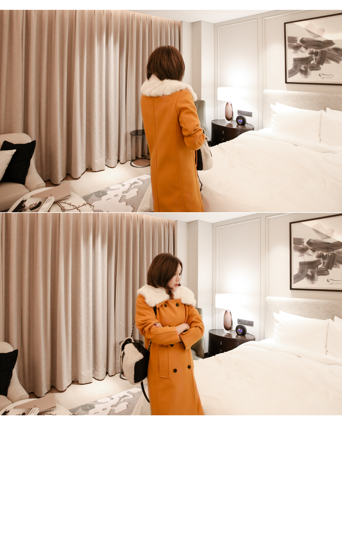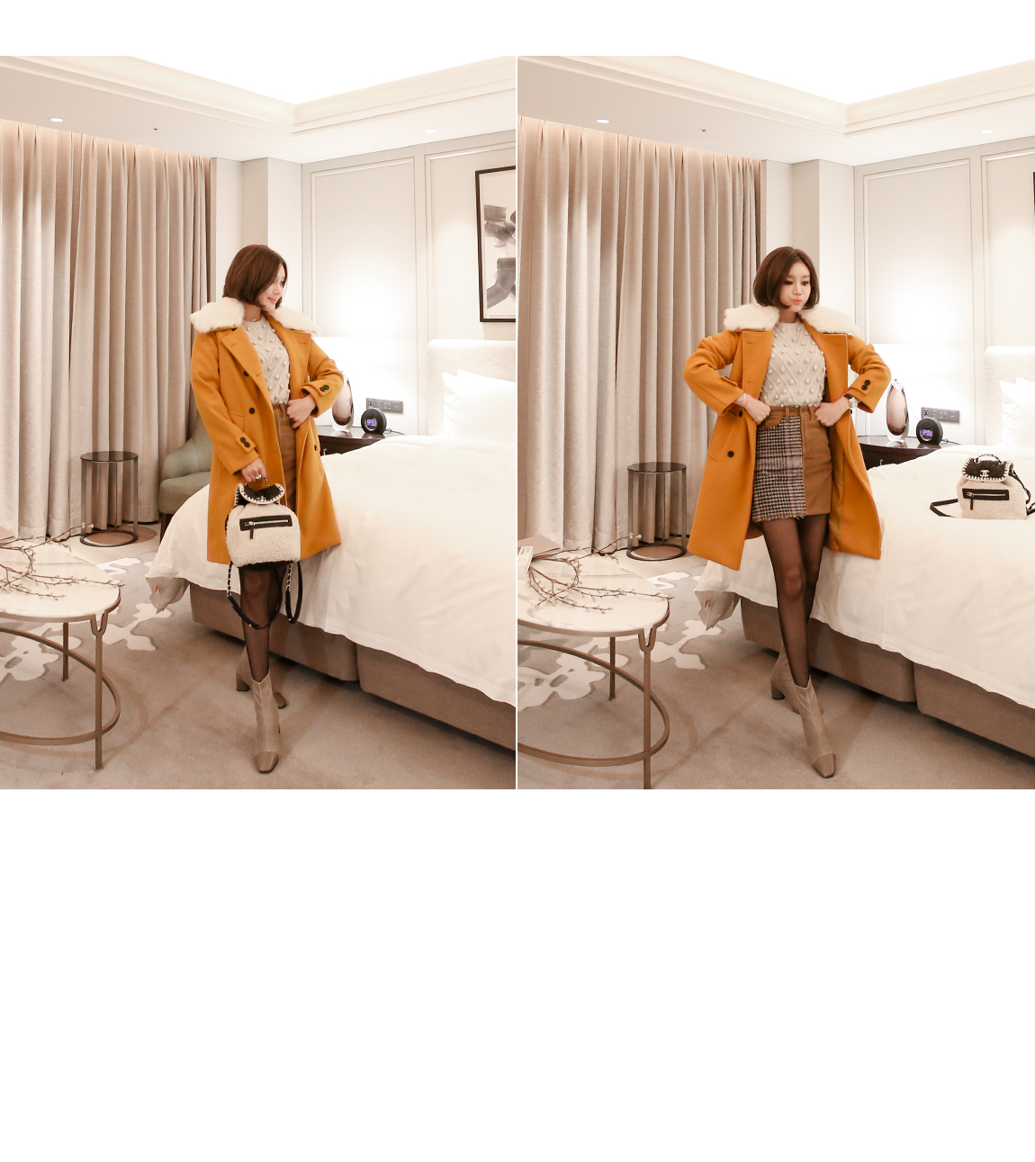 카라의 퍼는 탈착이 가능해 다양한 연출을 도와줍니다