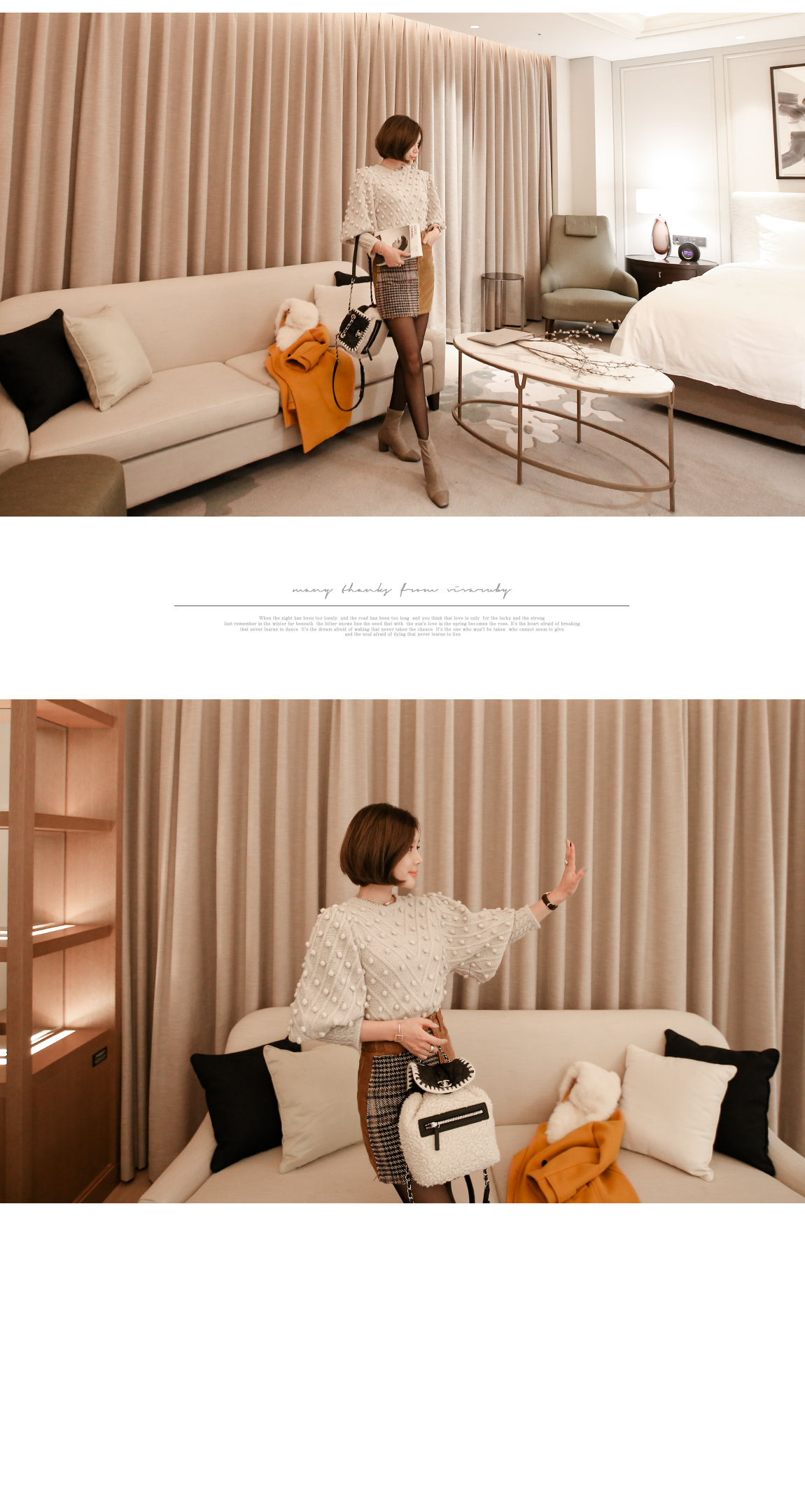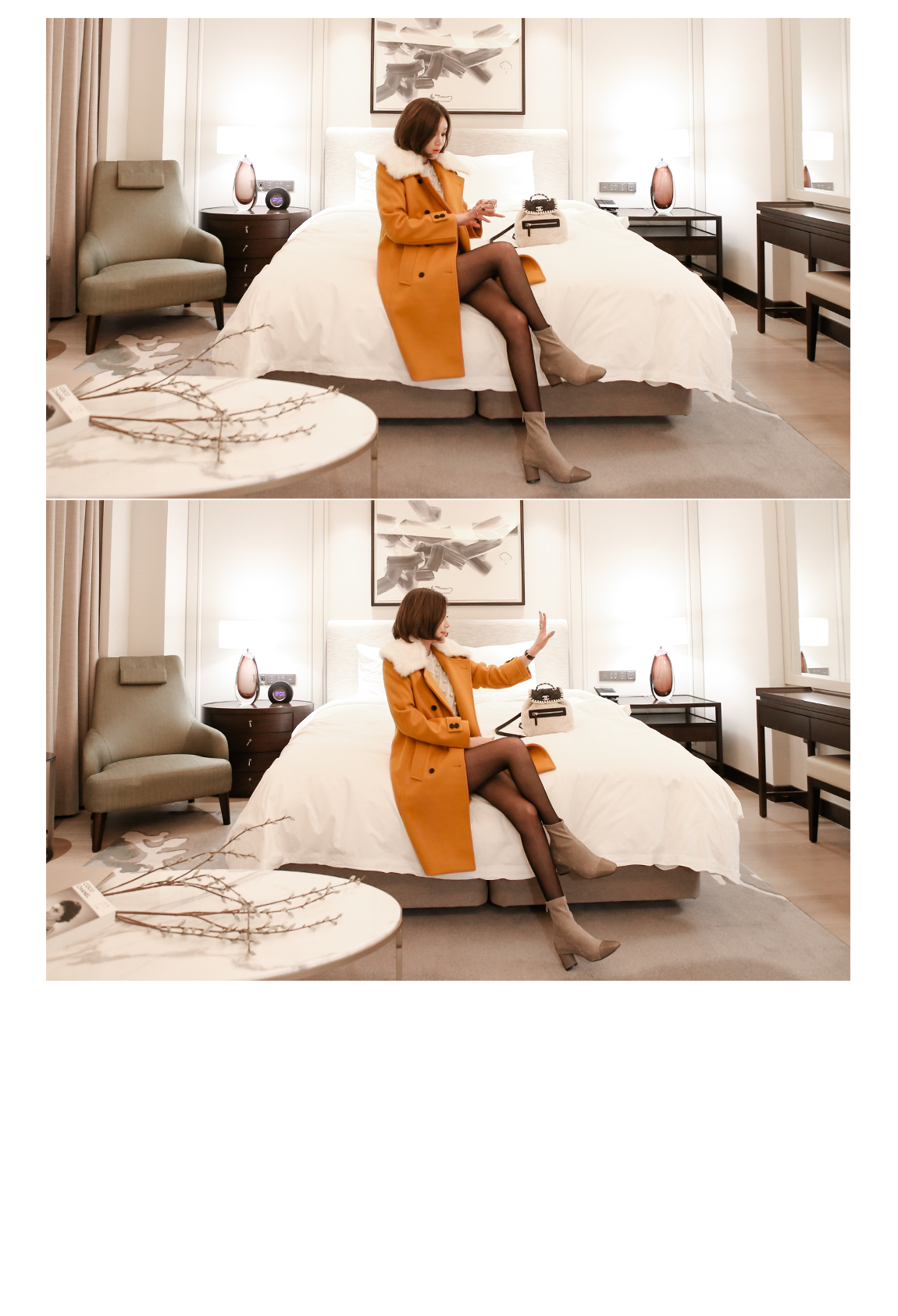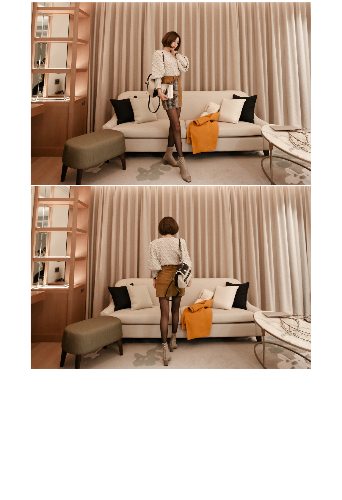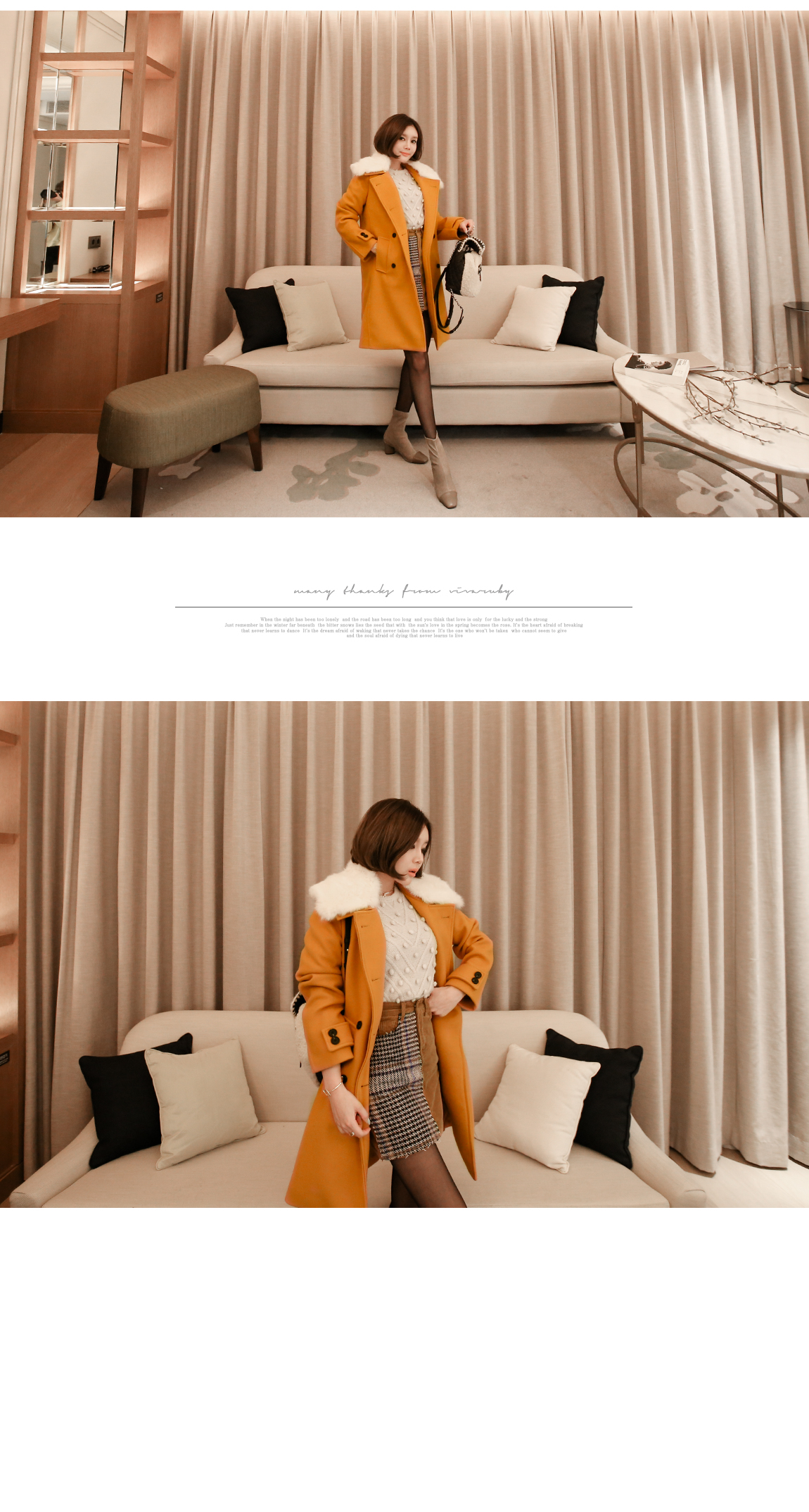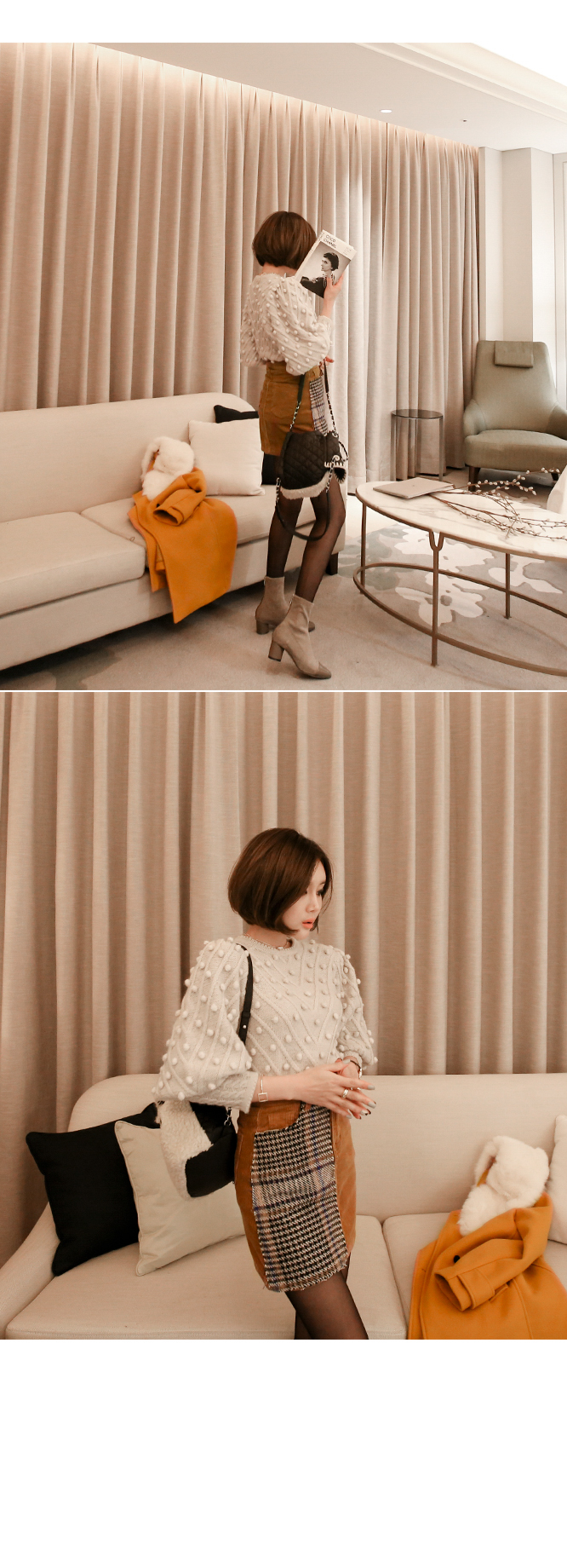 카라의 퍼는 탈착이 가능해 다양한 연출을 도와줍니다