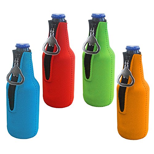 Zipper Beer Bottle Cooler Sleeve with Bottle Opener