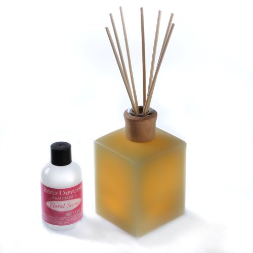 The new and elegant candlestick flameless candle reed diffuser comes with a fresh floral scent which can change the mood in any room from blah to wow. the diffuser is made from a unique wax that is not only beautiful, but soft to the touch. the custom scented oil is diffused slowly into your room through the wooden reeds. the diffuser is illuminated by a battery-powered flameless candle that flickers just like a real candle with two modes, candle or color morphing mood mode. the battery operated flameless candle in the diffuser also has a built in timer. when you turn the candle on it will stay on for 6 hours and automatically shut off; then, the built-in computer will turn it back on again at the same time every day. the flameless candle/diffuser measures 3-Inch deep by 3-Inch wide by 5.25-Inch tall, the reeds are approximately 8-Inch long. the set includes the flameless candle/diffuser, 3.3-ounce of fragrance and diffuser reeds.