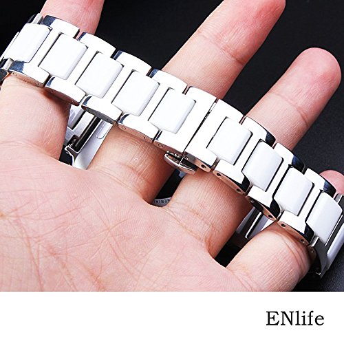 Apple Watch Band,ENlife® 38mm White Stainless Steel Ceramics Replacement Link Bracelet Strap Classic Wristband Double Button Butterfly Buckle for Apple Watch & Sport & Edition version(38mm White)