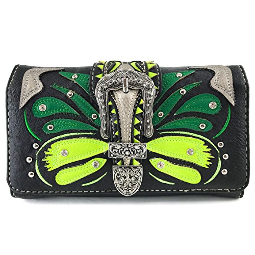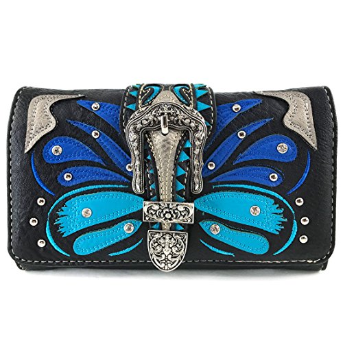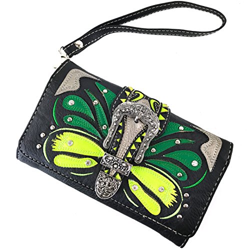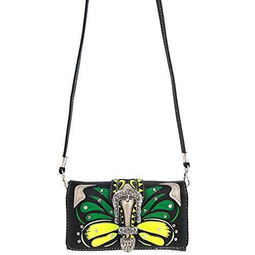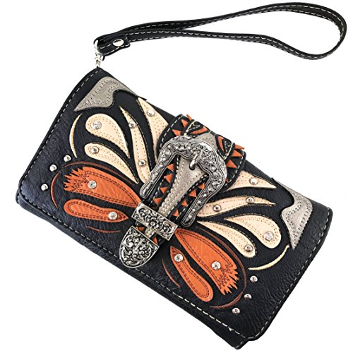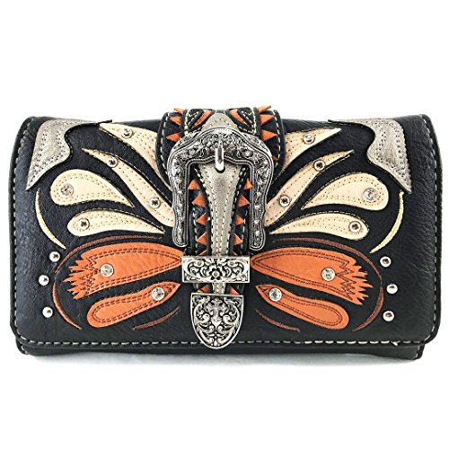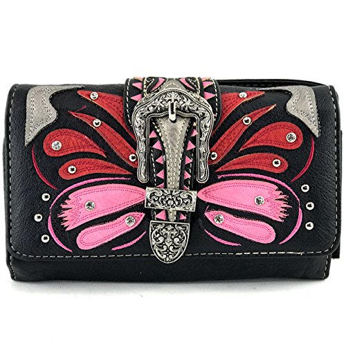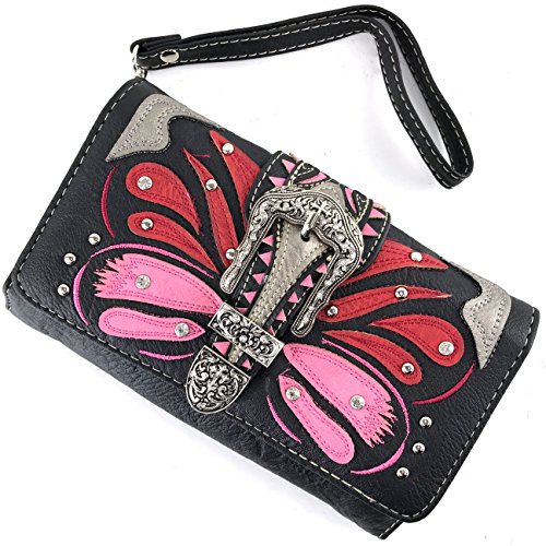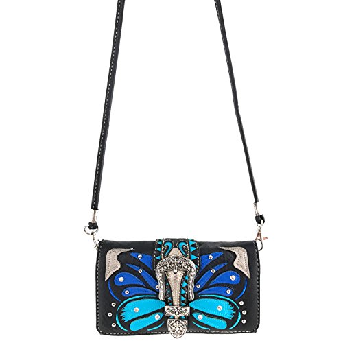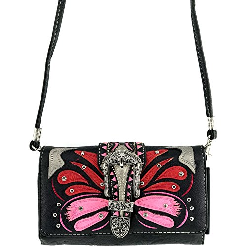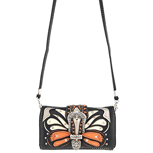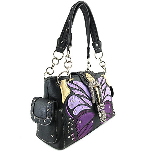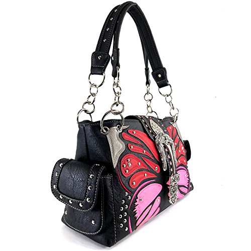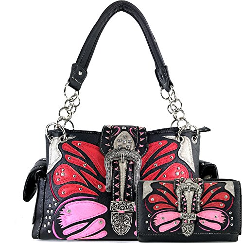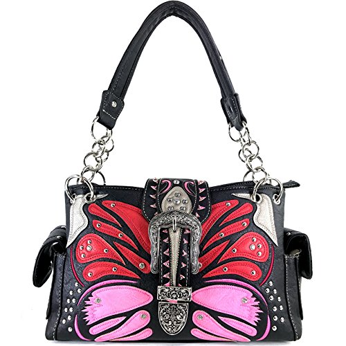 | Justin West Abstract Butterfly Buckle Black Conceal Carry Handbag |
