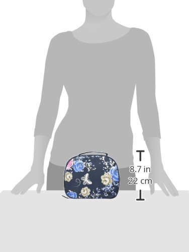 - Navy toiletry bag with dusky rose and forget-me-not blue floral design