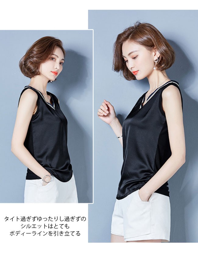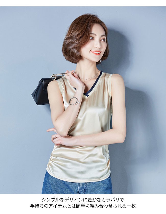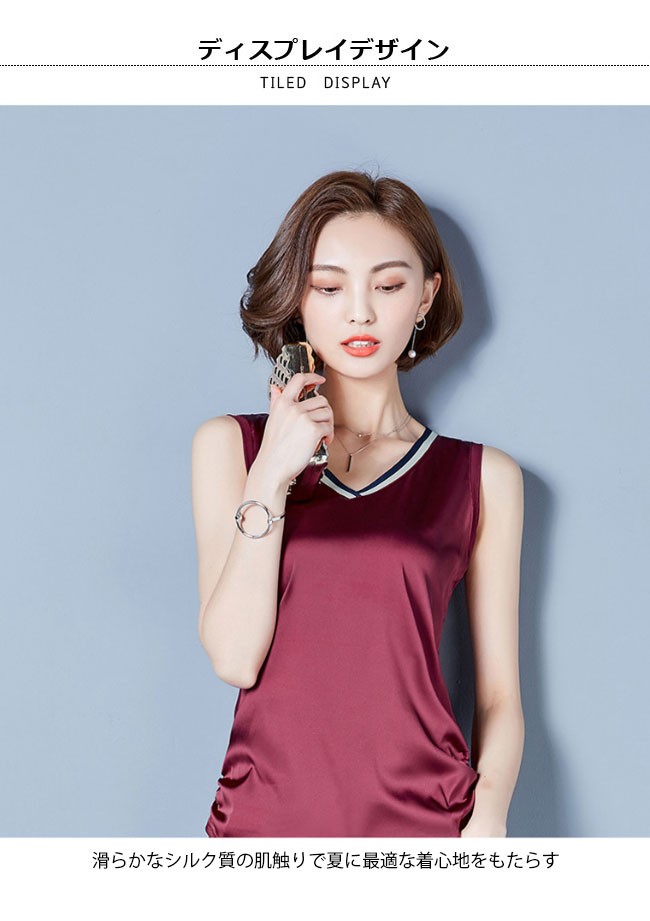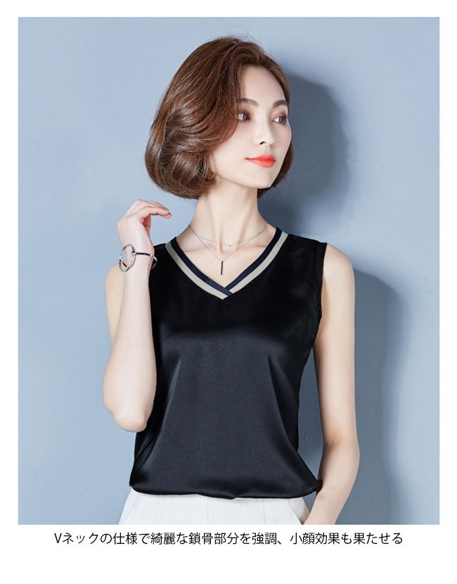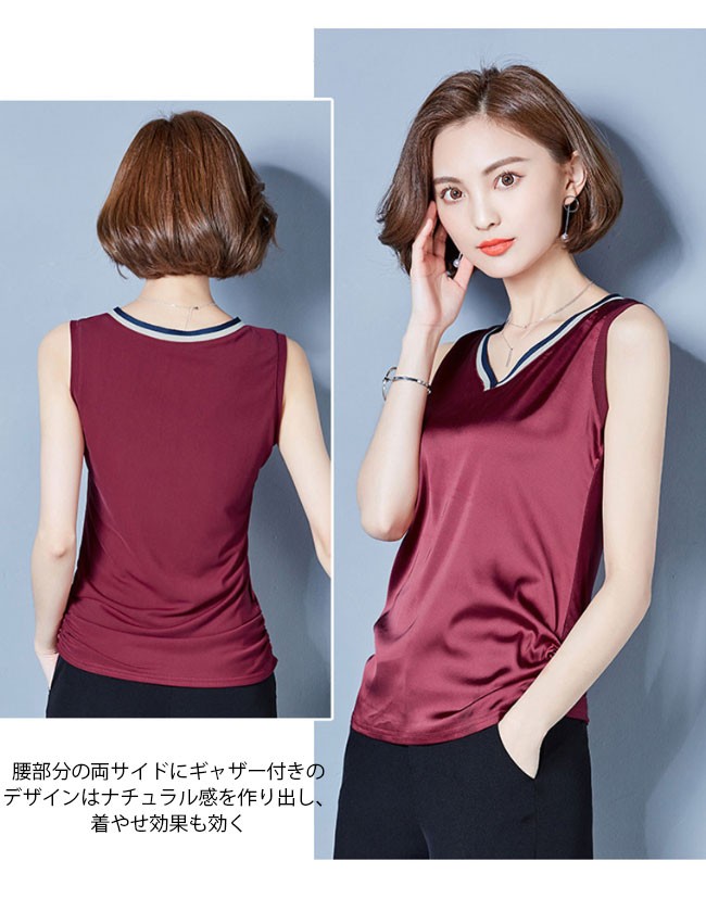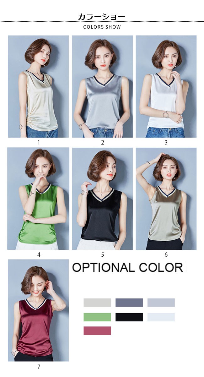 レディース タンクトップ Vネック 女性用 トップス ノースリーブ 夏物 滑らか 着まわし カラバリ インナー 着やせレディース用のタンクトップが登場滑らかなシルク質の肌触りで夏に最適な着心地をもたらすVネックの仕様で綺麗な鎖骨部分を強調、小顔効果も果たせる腰部分の両サイドにギャザー付きのデザインはナチュラル感を作り出し、着やせ効果も効くタイト過ぎずゆったりし過ぎずのシルエットはとてもボディーラインを引き立てるシンプルなデザインに豊かなカラバリで手持ちのアイテムとは簡単に組み合わせられる一枚カラー:1 2 3 4 5 6 7素材 ポリエステルサイズ(cm) M L XL 2XL 3XLM バスト84 着丈62L バスト88 着丈63XL バスト92 着丈642XL バスト96 着丈653XL バスト100 着丈66ご注意:※サイズは平置きサイズです。素人採寸ですので、若干の誤差がございます、ご了承ください。