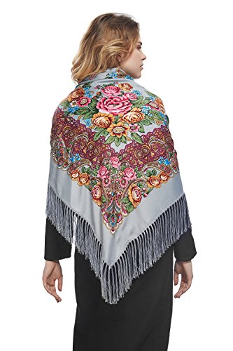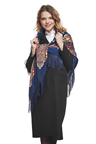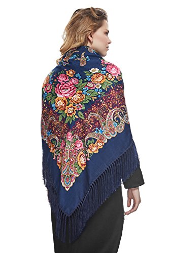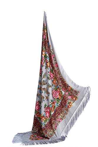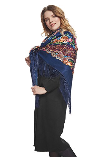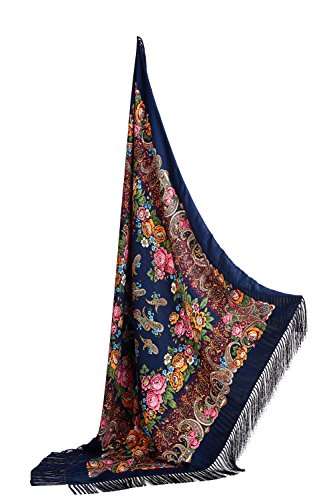 Binding : Apparel Product Description This fine wrap echoes famous Russian, Ukrainian and Polish floral shawls and especially Pavlovsky Posad scarves that are widely known as classic symbols of Russian handicraft and finest elegance. Back in the 18th century Russian shawls served both as a fashion women's accessory and as a decoration for interiors. Now embroidered scarfs represent a stunning mix of old traditions and modern style. Highlights ? The oversized square scarf with vibrant floral ornaments and long silk tassels all over the perimeter. ? The shawl features themes found in nature. ? The ethnic shawl can be worn around the neck, across the shoulders and over the head as a classic Russian head wrap (platok). ? This multifunctional scarf will add a touch of bohemian elegance to your look and keep you warm during chilly days. Materials and care tips ? The closely woven cotton blend fabric boasts the lustre look and soft feel of silk. Durable material with no stretch has excellet drape. It's hypoallergenic and won't irritate your skin. ? To save the vibrant colors of the wrap hand wash it in cold water using mild detergent. ? The shawl is wrinkle resistant, so it doesn't need everyday ironing. Warranty We are sure about high quality of our products. That's why we offer 30 day money back guarantee on all scarfs. If you don't like the shawl for any reason, return it within 30 days and get a full refund. 0