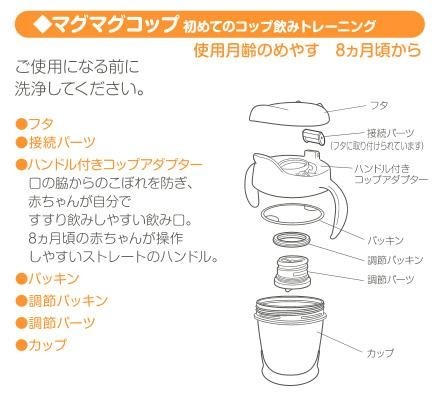 | 素材・材質 | ハンドル付コップアダプター:ポリプロピレン フタ:ポリプロピレン カップ:ポリプロピレン、水添型スチレンイソプレン共重合樹脂 パッキン:シリコーンゴム 調節パーツ:ポリプロピレン 接続パーツ:ポリプロピレン 調節パッキン:シリコーンゴム |