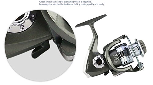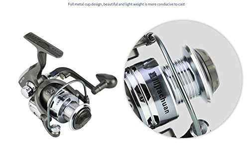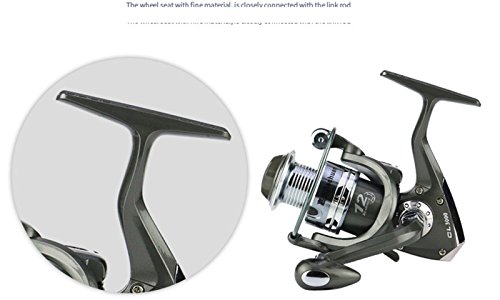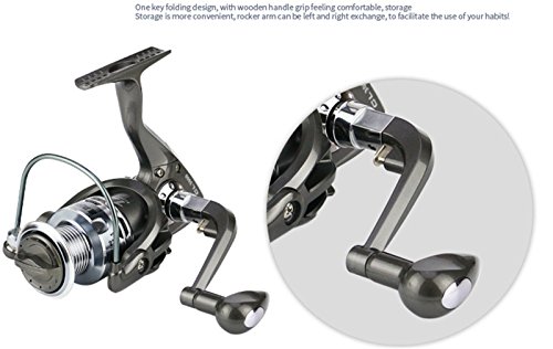 Studio : EEOZY Publisher : EEOZY Binding : Misc. Product Description If you are looking to catch small to medium sized fish, such as crappies, perch, trout, salmon, bluegills and walleyes, this is the perfect reel to use. Plusinno TM Fishing Reels Spinning Freshwater Saltwater with 5.5:1 Gear Ratio Metal Body Left/right Interchangeable Collapsible Handle Spinning Fishing Reel Interchangeable Collapsible Handle Reel 1.newest design fishing reel HA3000 2.aluminium spool with double color and one line holes 3.Instant anti-reverse 4.Power drive gear equipped for high strength 5.Thick coiled bail spring 6.S-curve oscillation system for very good line winding 7.Right/left inter-changeable handle 8.Computer balanced rotor 9.High tensile strength plastic body 10.Casts furthest amoung reel types; Longer life of reel; Cast light weight lures and baits better 11. Additional uses include: Pier fishing; Offshore fishing; Shore fishing; Boat-mounting Model bearing weight gear speed ratio 1000 12 shaft 185 g 5.5.1 2000 12 axis 195g 5.5.1/ 3000 12 Axis 250g 5.5.1/ 4000 12 axis 265g 5.5.1/ 5000 12 axis 280g 5.5.1/ 6000 12 shafts 370g 5.5.1/ 7000 12 Axis 390g 5.5.1/