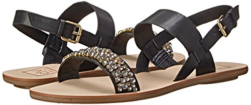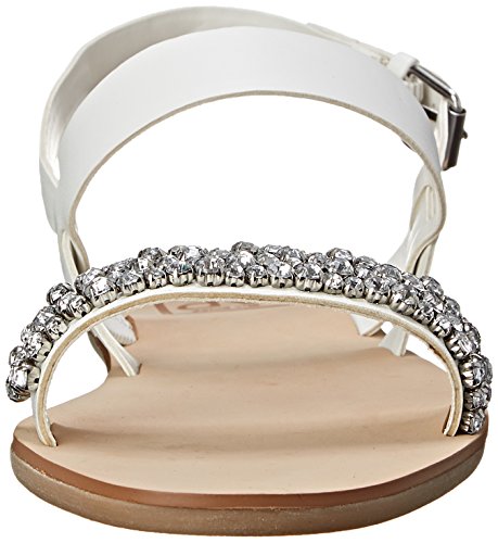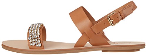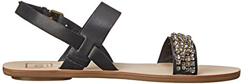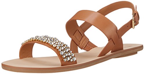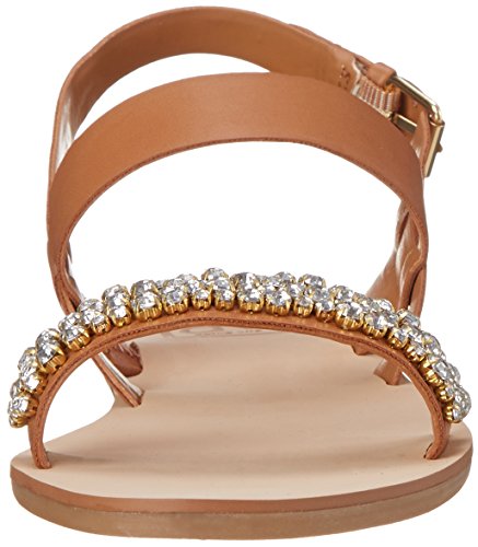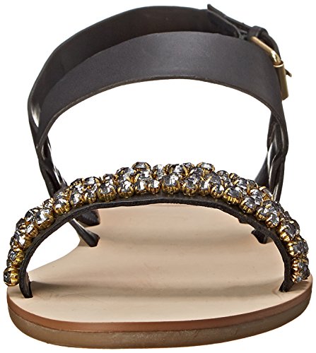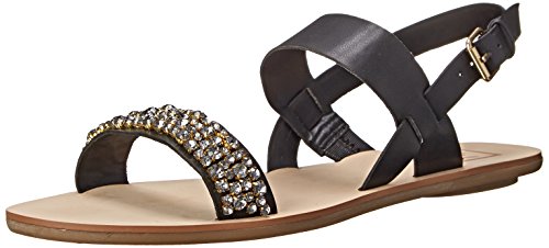 Sandal featuring cluster of sparkling faux gemstones at toe and adjustable backstrap with buckle closure