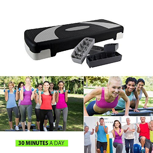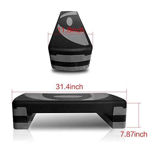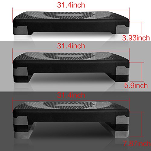 Anti-slip Coating Protect you from harm, protect your floor from harm, protect your stepper from harm. Adjustable Heights Constructed with a non-slip surface and 3 height settings (4'-6'-8') for challenging your workout. Use it in the comfort of your own home or take it with you to your next outdoor, aerobics class. Softly Rounded Sides Softly sounded sides portect you from harm if accidents happened.
