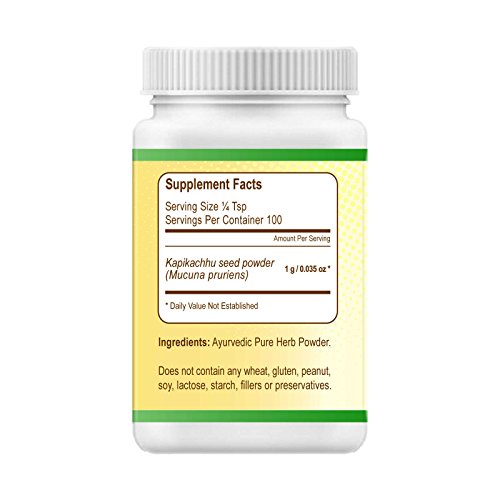 -. Feature : ✓ Organic pure herb standardized powder (obtained from the seed. / ✓ The best ayurvedic aphrodisiac herbal supplement for testosterone, libido, vigour and vitality. / ✓ Nature's invaluable aphrodisiac herb that helps in oligospermia (low sperm count) and male fertility. / ✓ Non-GMO, FDA, GMP and ISO 22000 approved ayurvedic dietary supplement with max potency. / ✓ Pure Herb Names - Mucuna pruriens / Kapikacchu / Cowitch / Velvet Bean.