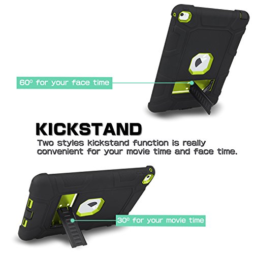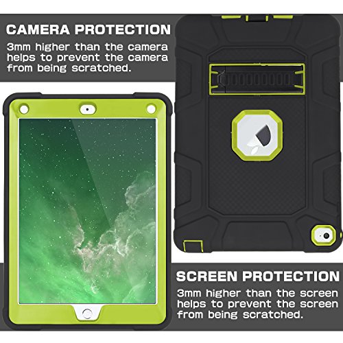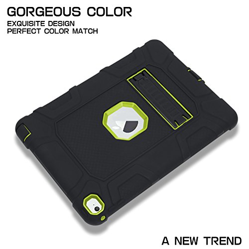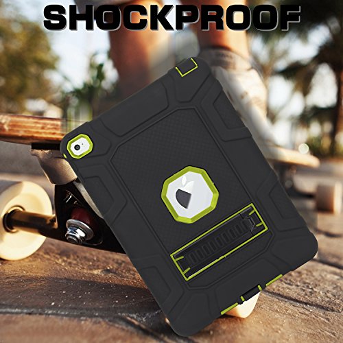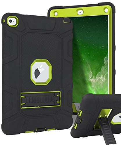 iPad Air 2 Case,XIQI ArmorBox Three Layer Kickstand Armor Defender Heavy Duty Shock-Absorption Full Body Rugged Hybrid Protective Case for iPad 6/Air 2 case,Black Lemon Yellow