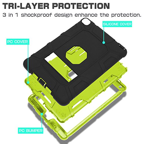 Three layer protective design(The outer layer is silicone with the inner dual layer PC case): Inner PC with the overflow border to make your ipad have full body protection.Outter soft silicone material,rugged back texture provides better grip preventing slips and falls. protect your device from scratches, drop, bumps, dirt, grease, and fingerprints