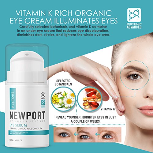 Our facial moisturizer and anti aging eye cream reduces dark circles with soothing chamomile. It lightens with gentle botanicals like aloe vera. And it firms the the under eye skin, eyelids, and surrounding area to smooth your eye profile. Notice a seamless blend into your cheekbones and a gentle, natural lift to your eyebrows after two weeks with this organic eye cream. A generous dose of vitamin K diminishes darkness, soothes redness, and reduces fine lines and discolouration. Glycolic and hyaluronic acid support your skin's ability to retain a consistent balance of moisture. Green tea extract is packed with antioxidant-rich polyphenols that protect your skin against the damage of free radicals and sun exposure. Aging is the one chronic condition we all experience. Unfortunately, our skin suffers the brunt of time more than any other organ-and of course, it's more visible around the eyes than anywhere else. Fortunately, nature gives back what time takes away, but it takes the fortitude of scientific skin care technology to create a compound that can not only prevent but also reverse the signs of aging. Finally, an eye serum that exceeds your expectations. When every other product you've tried has failed to work you're likely feeling disgruntled and having little faith in the skincare market. Don't be let down. There is magic in an eye cream that you'll want to recommend again and again because it works so well.