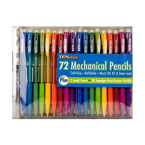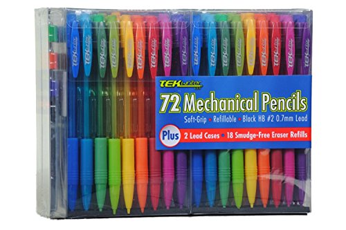 Tek Writer Mechanical Pencils 72 Refillable Pencils HB #2 0.7mm Lead, Plus 2 Lead Dipensers (220 refills) and 18 Refill Erasers