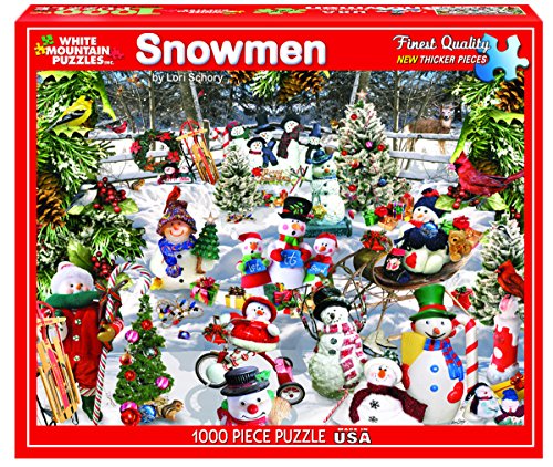 Studio : White Mountain Puzzles, Inc. Publisher : White Mountain Puzzles, Inc. Binding : Toy Product Description This snowman puzzle features a collection of jolly snow people creating a happy holiday scene. Amidst Christmas trees and wreathes galore along with toys, dolls and sleighs, this whimsical scene might ask: which jolly snowman is your favorite? 0