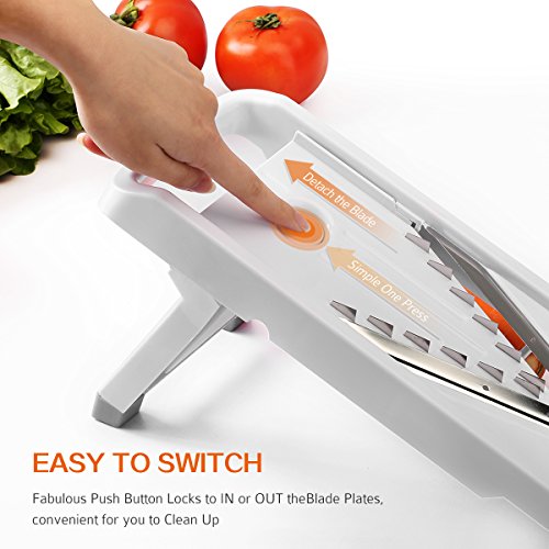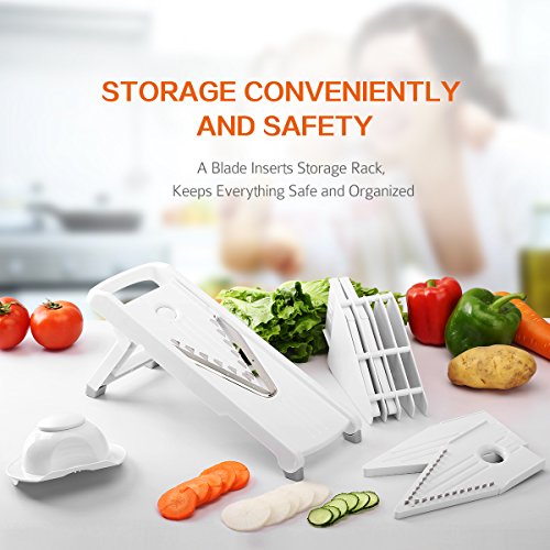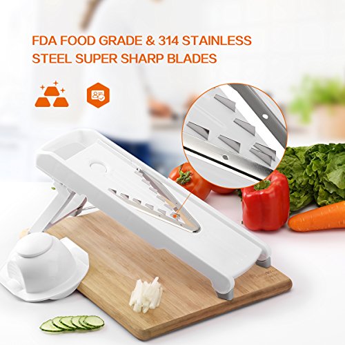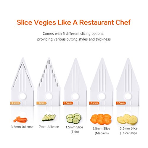 DIFFERENT STAINLESS STEEL BLADES: Comes with 5 different slicing options, providing various cutting styles and thickness