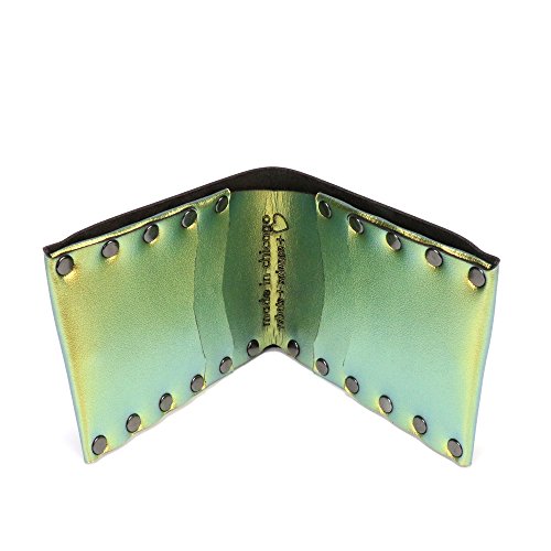 Binding : Apparel Product Description You've got to know when to hold 'em. Know when to fold 'em! Created by an architect and an artist our folding wallets are engineered to be stylish, durable and functional. The hand riveted bi-fold design can hold up to 8-12 cards with cash. Each wallet is made to order in our workshop in Chicago. Built to last using ultra durable faux leather and suede that has a double rub count of 250,000 . In other words you could take this wallet in and out of your pocket 10 times a day for 68.5 years before you see significant wear. Features: ● Flexible ● No Stitch Design ● Hand Riveted ● Interior Laser-Etched Logo ● 3D Laser Printed ● Made in USA ● Accommodates 8-12 cards with folded cash ● Lightweight ● Vegan ● Durable Materials: ● Vegan Leather (Double Rubs: 250,000 ) ● Vegan Suede (Double Rubs: 250,000 ) ● Nickel Plated Steel Rivets Specs: ● Folded - Length: 4.25" (10.8cm) Width: 3.15" (8.0cm) Depth: .50" (1.28cm) ● Unfolded - Length: 8.63" (21.9cm) Width: 3.15" (8.0cm) Depth: .25" (.64cm) 0