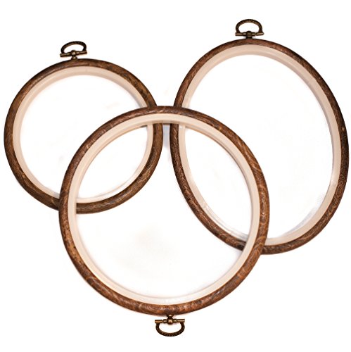 Embroidery Hoops and Cross Stitch Hoops by Cfox | Imitated Wood Display Frame - Circle and Oval Hand Embroidery Hoop Kit | Art Craft and Sewing – 3 Pcs