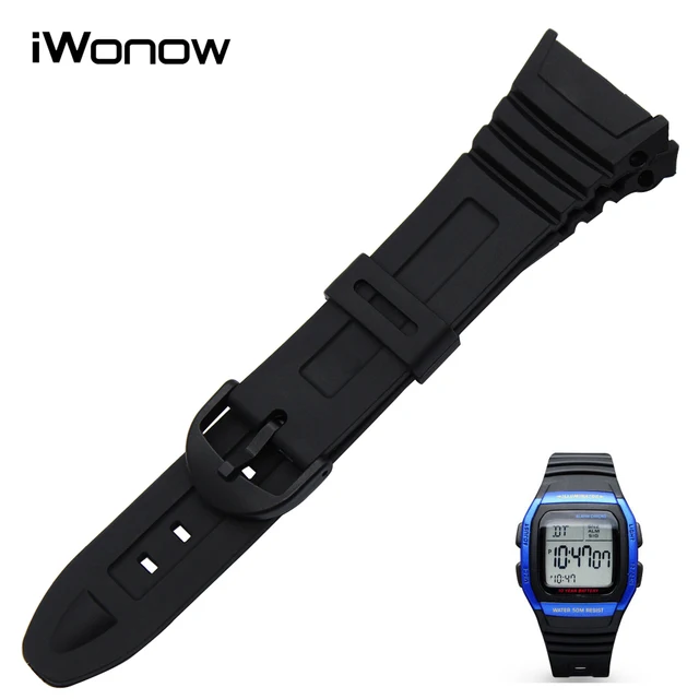 | [해외] 실리콘 고무 손목 casio w-96h 남성 여성 교체 시계 밴드 핀 버클 스트랩 스포츠 벨트 손목 팔찌 블랙 |