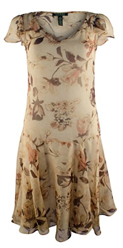 -. Title : Lauren Women's Plus Size Floral V-Neck Drop Waist Dress