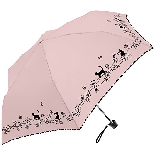 -. Title : ミクニ クローバー&キャットプリント 全3色 折りたたみ傘 手開き 日傘/晴雨兼用 6本骨 50cm UVカット