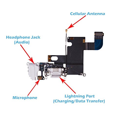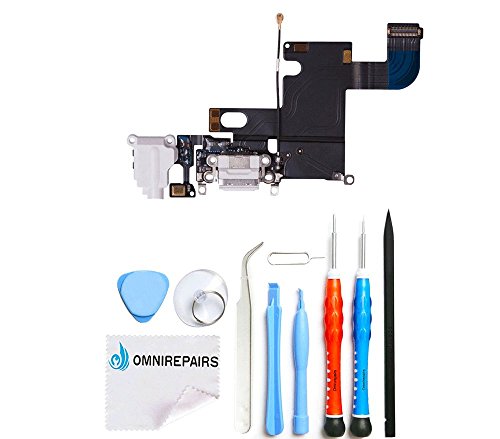 Omnirepairs-For iPhone 6 4.7'' A1549, A1586, A1589 Charging USB Lightning Port Flex Cable + Microphone + Headphone Audio Jack Replacement Assembly + Tools (White)