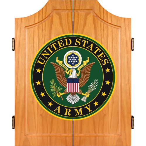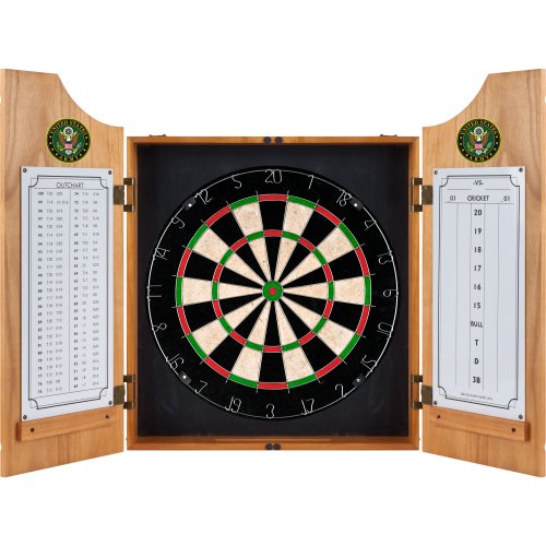 - Feature : Solid Pine Construction, Dove Tail Joints,Beveled Doors, Metal Hinges / Officially Licensed Art Displayed on the Interior and Exterior of the Doors / Dartboard Features: Self Healing Sisal Fiber,Removable Number Ring, Official 18-Inch Diameter / Dimensions (Closed): 3.5 x 20.5 x 24.75-Inch / Includes 6 Steel Tip Darts,2 Magnetic Markers with Erasers