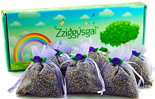 Zziggysgal 6 French Lavender Sachets in a Beautiful Keepsake Box (Lavender colored)