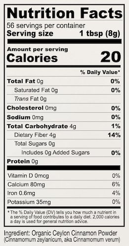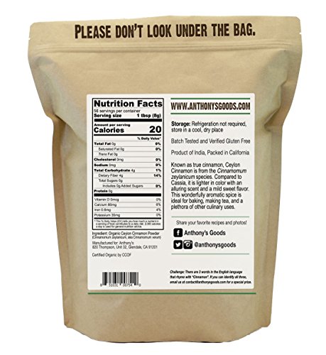 The two types of cinnamon, Ceylon and Cassia, come from two related but different trees. Known as true cinnamon, Ceylon Cinnamon is from the Cinnamomum zeylanicum species. Compared to Cassia, it is lighter in color with an exotic scent and a mild sweet flavor. This wonderfully aromatic spice is ideal for baking, making tea, and all other culinary uses. Anthony's Organic Ceylon Cinnamon is grown and freshly ground in India.Feature