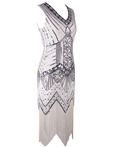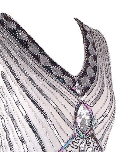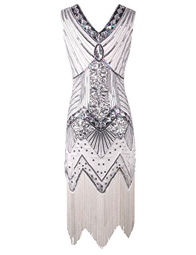 meilun 1920s Sequined Inspired Beaded Gatsby Flapper Evening Dress Prom (XXL, White)