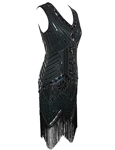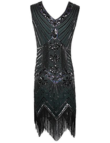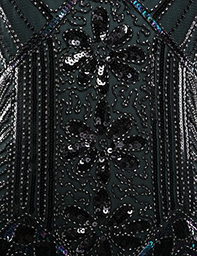 meilun 1920s Sequined Inspired Beaded Gatsby Flapper Evening Dress Prom (XXL, Dark Green)