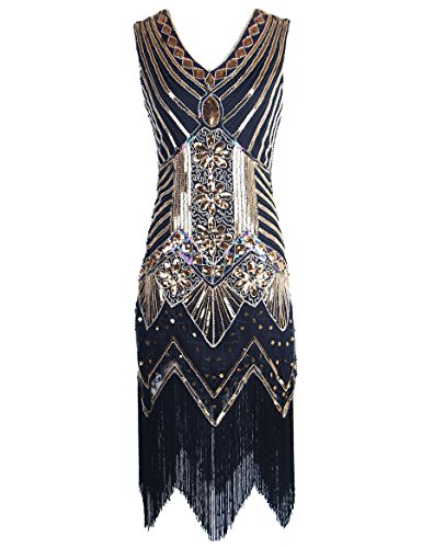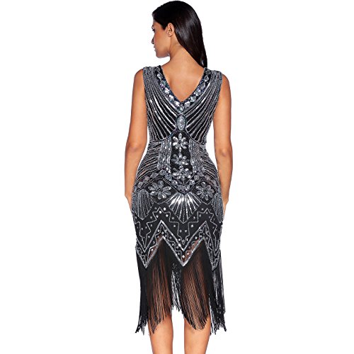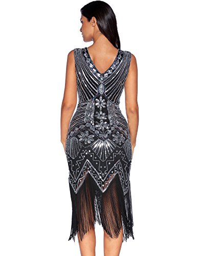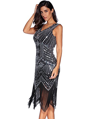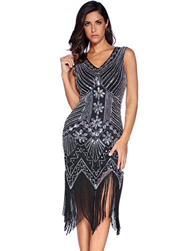 Meilun 1920s Sequined Inspired Beaded Gatsby Flapper Evening Dress Prom,Black,Large