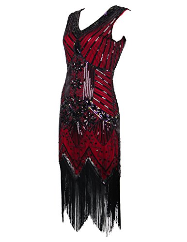 meilun 1920s Sequined Inspired Beaded Gatsby Flapper Evening Dress Prom (S, Red)