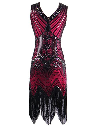 meilun 1920s Sequined Inspired Beaded Gatsby Flapper Evening Dress Prom (S, Rose Red)