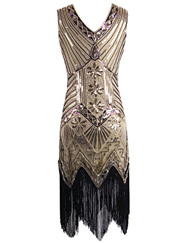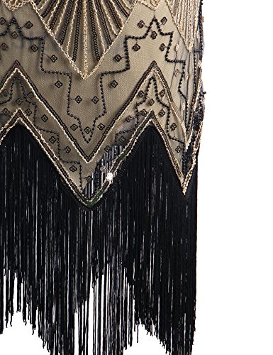 meilun 1920s Sequined Inspired Beaded Gatsby Flapper Evening Dress Prom (XL, Gold)