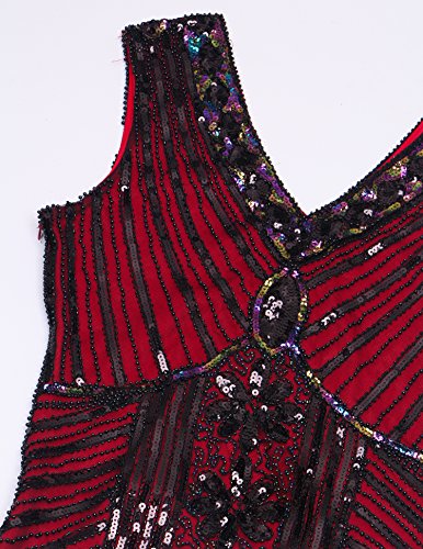 meilun 1920s Sequined Inspired Beaded Gatsby Flapper Evening Dress Prom (XXL, Red)