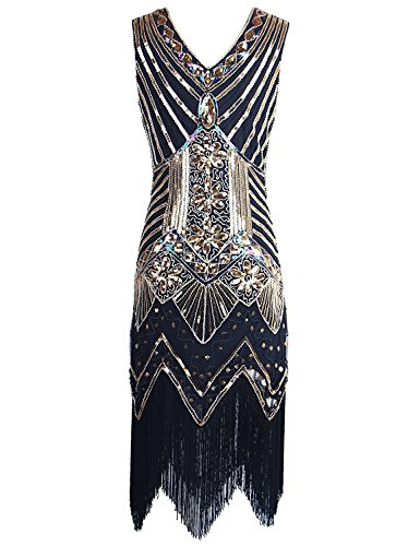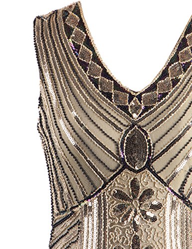 meilun 1920s Sequined Inspired Beaded Gatsby Flapper Evening Dress Prom (L, Gold)