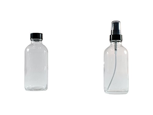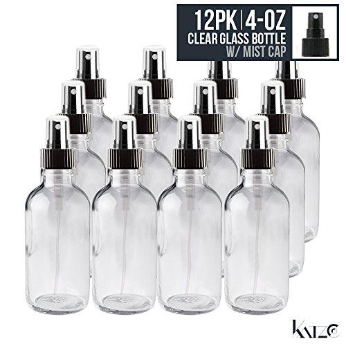 Mist spray/ Glass Medicine Bottle - Amber Boston Clear Round Bottles 4OZ. 12Pack - For Essential Oils, Scents, Travel, Perfume Kitchen, Bath, Cooking, Labs, Laundry, Cosmetic.- Re-Usable -By Katzco