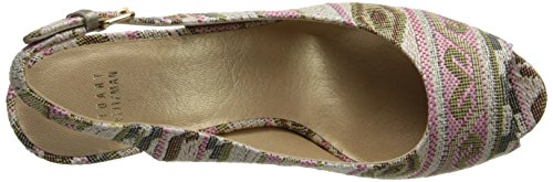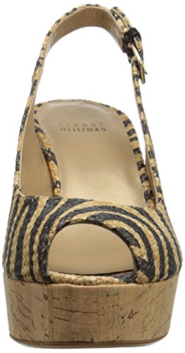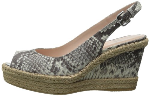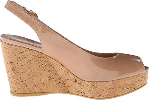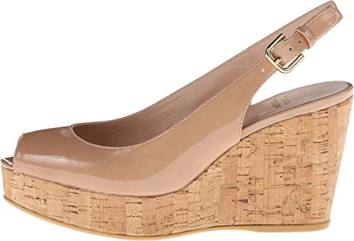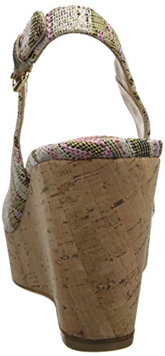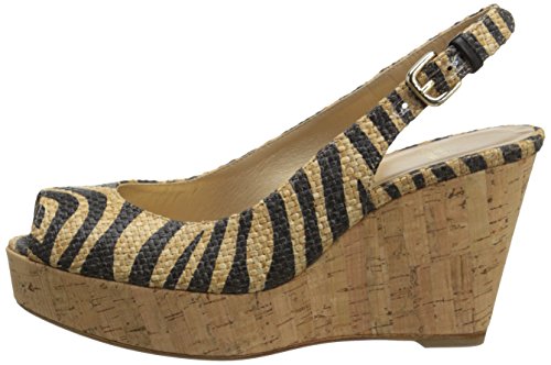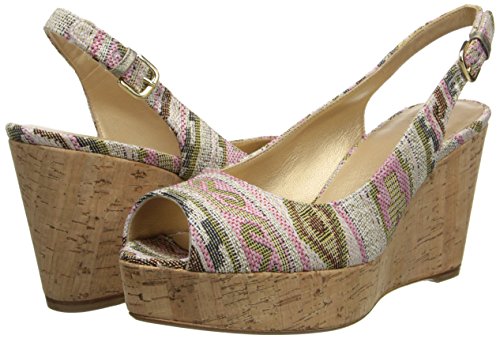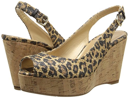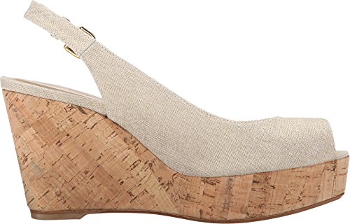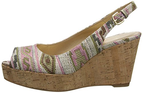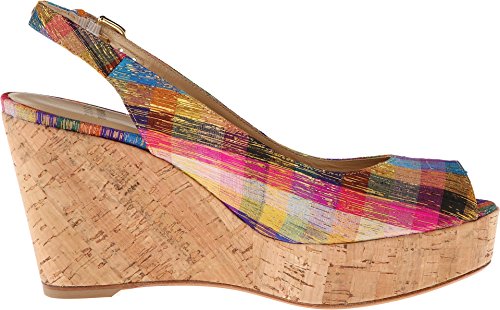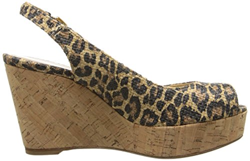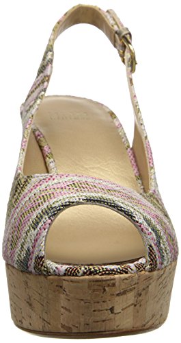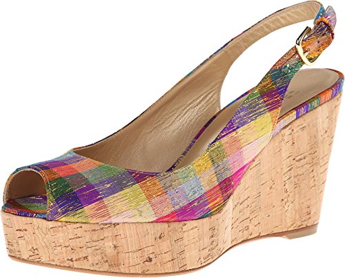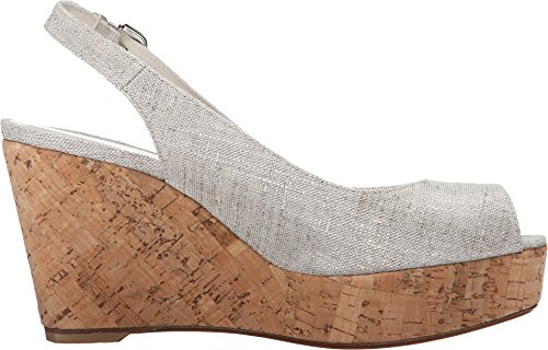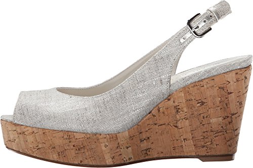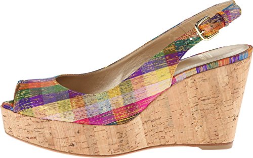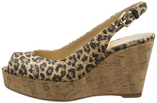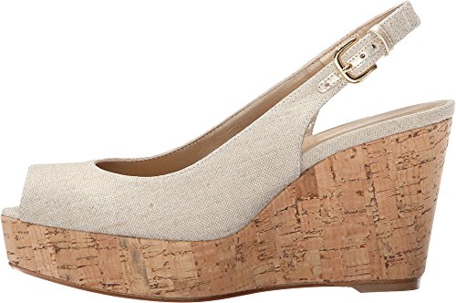 Slingback wedge sandal featuring cork midsole and silver-tone buckle at strap