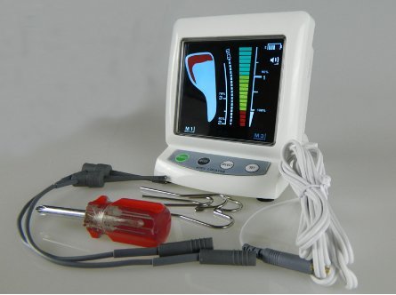Studio : Doc,Royal Publisher : Doc,Royal Binding : Misc. Product Description 1.Root file holder alternatively electrode could be sterilized by autoclave.It is safe and clean. 2.Battery power is indicated on high resolution color LCD screen.The device will automatically turn off after 20 minuted when not in use. . 3. 3 kinds of soft alarm sounds to choose from plus adjustment of volume or without voice.It is convenience to change mode.. 4.To make position of root canal file the same as indicator bar,adopts color large LCD display with exact visualization. . Set Shing position of root tip arbitrarily to length sign during operation. . 1.Voltage:DC 7.5V(5XDC 1.5V AA ALkali dry cells) . 2.Power consumption:below AC80mV . 3.Test Voltage:below AC80mV 4.Test electric current:below 10uA 0