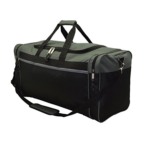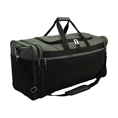-. Brand : DALIX -. ClothingSize : XL -. Department : unisex-adult -. Feature : FEATURES: Main compartment, Two zippered Side Pockets, One Front Zippered Pocket, Plastic Gusset Bottom, Shoulder Strap included / MATERIAL: Polyester / SIZE: 25 " x 11 " x 12.5" / COLORS: Black, Gray, Navy Blue, Red, Digital Camouflage / CLOSURE: Zipper and Shoulder Strap -. Model : DF-056 -. ProductGroup : Apparel -. ProductTypeName : LAGE -. Size : XL -. Title : DALIX 25" Extra Large Vacation Travel Duffle Bag (Black, Grey, Navy Blue, Red, Camo)