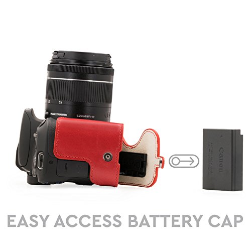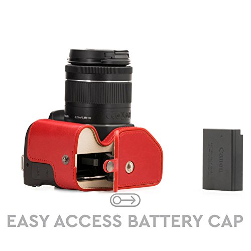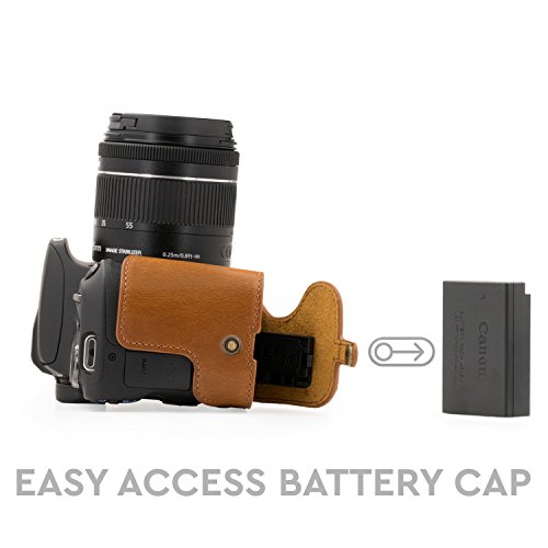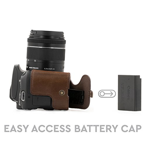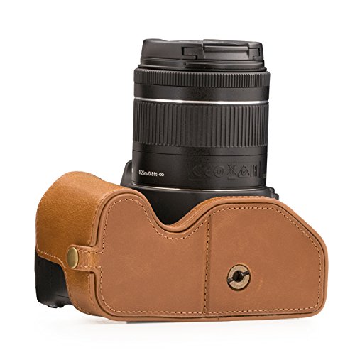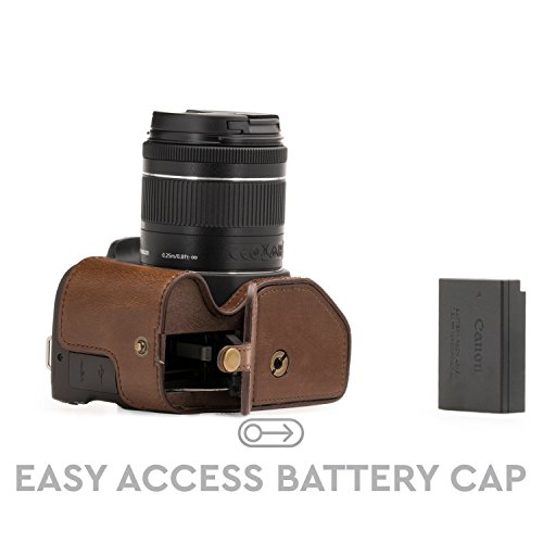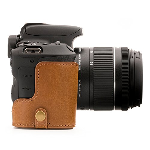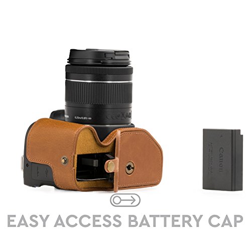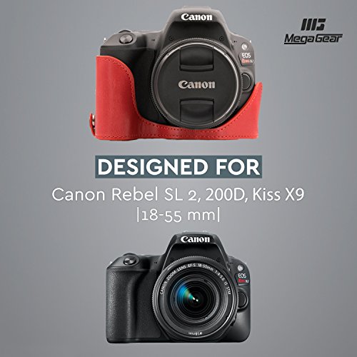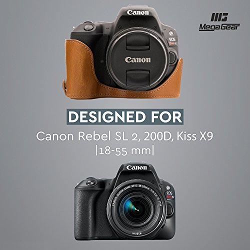MegaGear Immer bereit Leder Kameratasche fur Canon EOS Rebel SL2, EOS 200D, Kiss X9 - Half-Bottom Schutzhulle - haltbar, kratz- und Stossfestigkeit