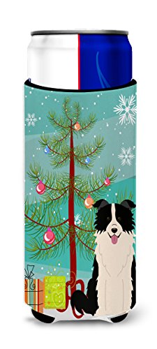 Caroline's Treasures BB4243MUK Merry Christmas Tree Border Collie Black White Michelob Ultra Hugger for Slim Cans, Multicolor