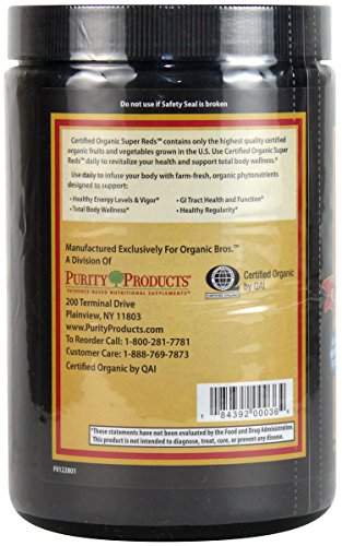 Each and every ingredient included in Organic Super Reds is carefully selected from Certified Organic Farms to ensure that the highest quality product available is being included. Certified Organic Super Reds is certified "organic" by both the USDA and QAI - a global leader in Organic Certification.