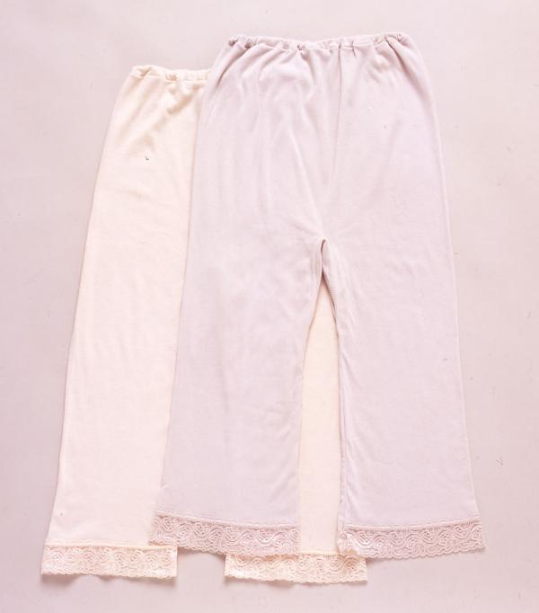 | 綿100%5cm裾レース仕様。マイナスイオン加工生地で肌触りすっきりさわやか。 |
