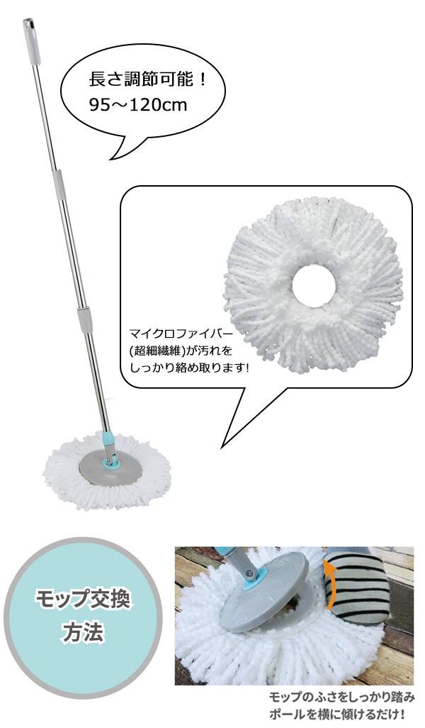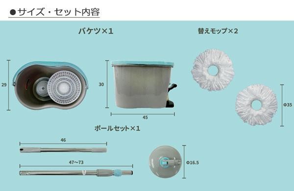 | 素材・材質 | バケツ:ポリプロピレン、その他 ポール:ポリプロピレン、ステンレス鋼、その他 モップ:ポリプロピレン、マイクロファイバー(ポリエステル100%)、その他 |