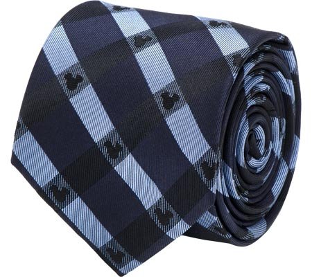 - Dark navy and baby blue plaid patterning with black Mickey Mouse heads.