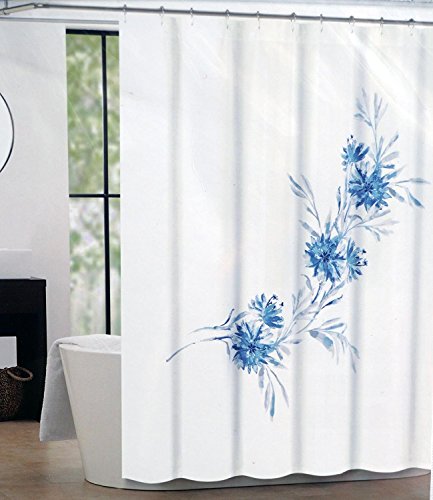 Tahari Fabric Shower Curtain Floral Pattern Blue Gray on White -- Martina